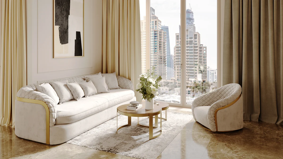 – Sofa (plush velvet or leather look, larger for 2–4 Beds)